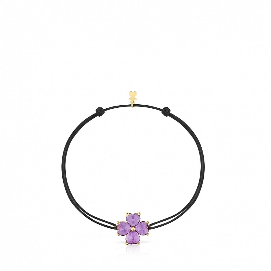 Браслет TOUS Daisy из желтого золота 18 карат с аметистом в форме сердца и с черным нейлоном. Размер мотива: 6 мм. Длина браслета: 17 см. Застежка-слайдер.