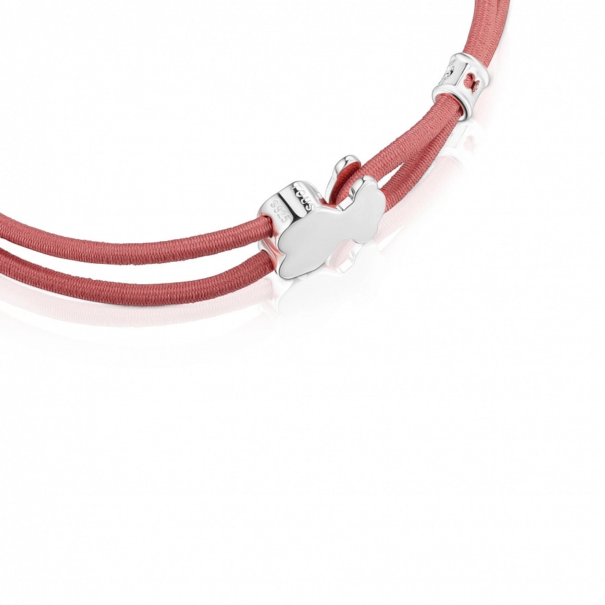 Эластичный браслет TOUS Sweet Dolls розового цвета, размером 17 см с шармом из серебра 925 пробы. Техника изготовления: Литье. Размер мишки: 11 х 8 мм.