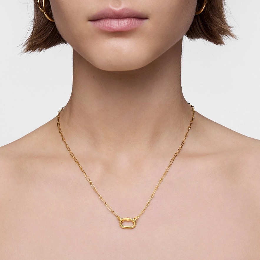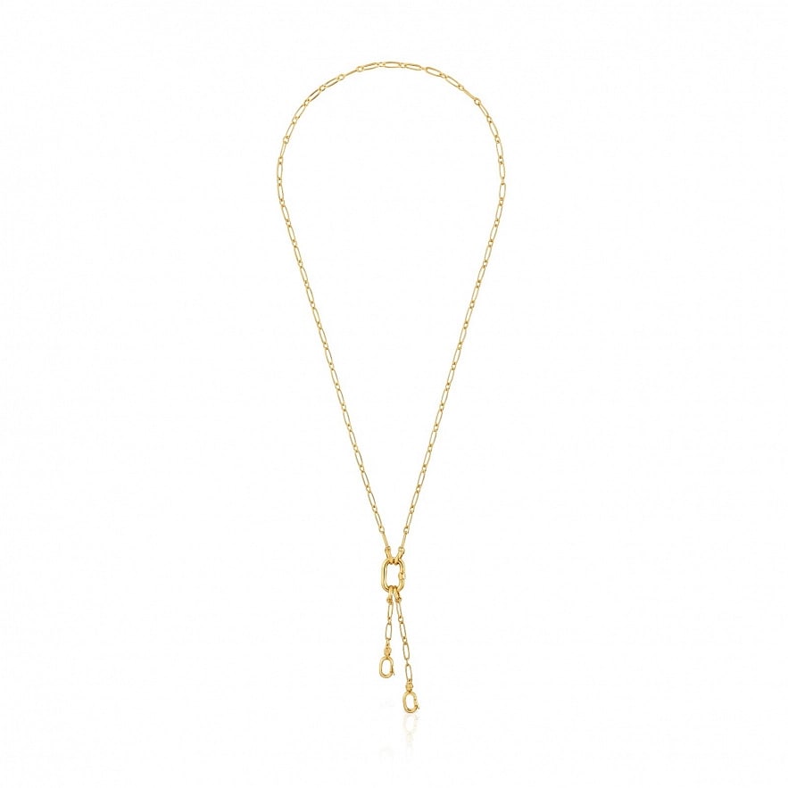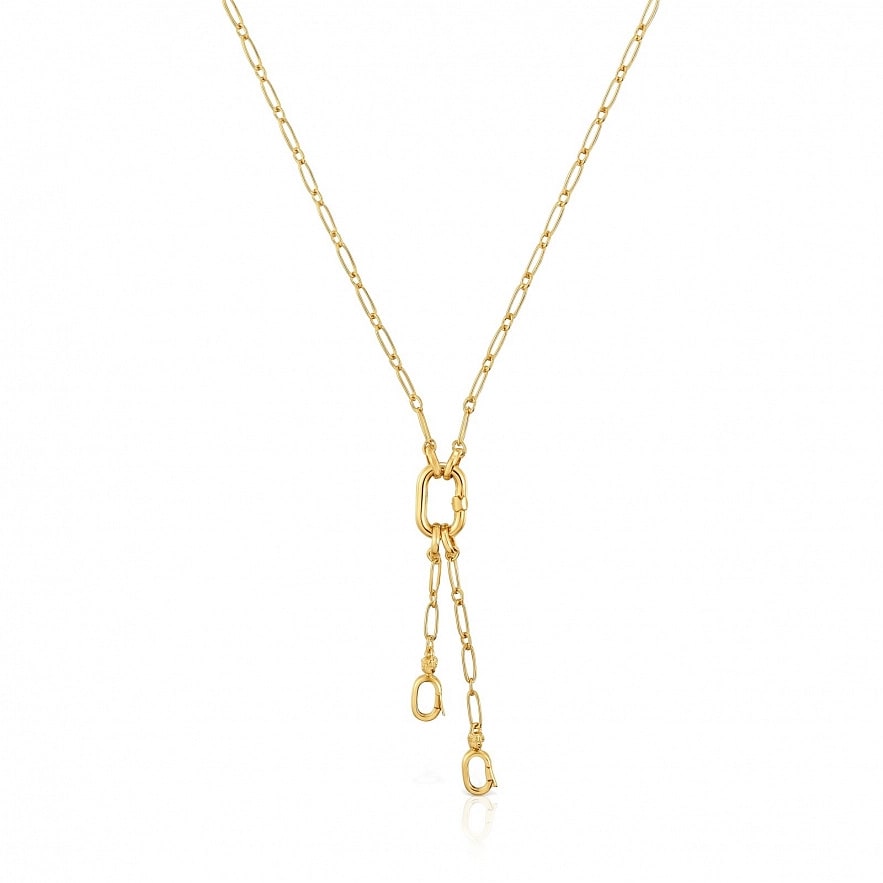 Колье TOUS Hold Oval из серебра 925 пробы с покрытием Vermeil , с двумя деталями-кулонами и кольцом-фіксатором. Размер кольца: 20 мм. Длина колье: 50 см. Застежка на кольцо. Примечание: персонализируйте этот дизайн с помощью кулонов, брелков или колец.