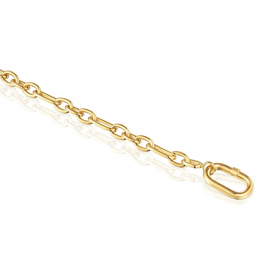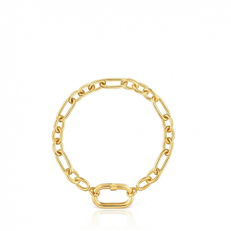 Браслет TOUS Hold Oval из серебра 925 пробы с покрытием Vermeil и кольцом-фиксатором. Размер кольца: 20 мм. Длина браслета: 18 см. Застежка на кольцо. Примечание: персонализируйте этот дизайн с помощью кулонов, брелков или колец.