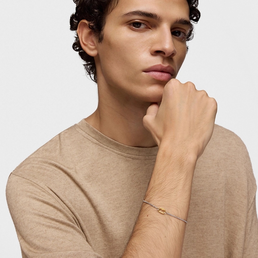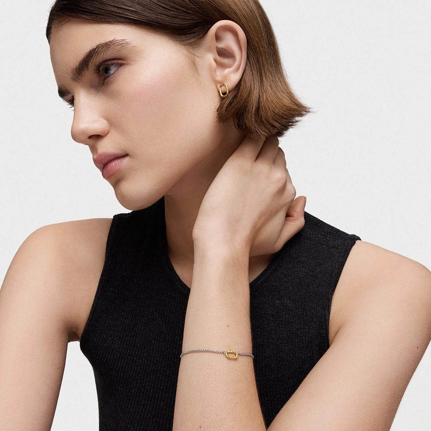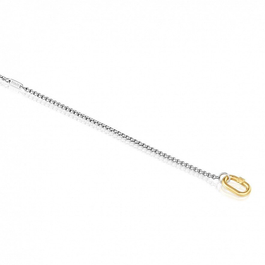 Браслет TOUS Hold Oval из желтого золота 750 пробы с кольцом и стальным браслетом с деталями. Размер кольца: 10 мм. Длина браслета: 17,5 см. Застежка на кольцо. Примечание: Персонализируйте этот дизайн с помощью кулонов, брелков или колец.