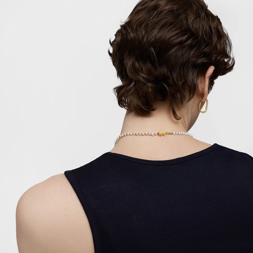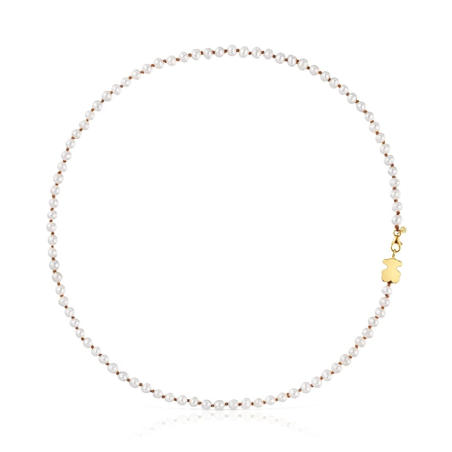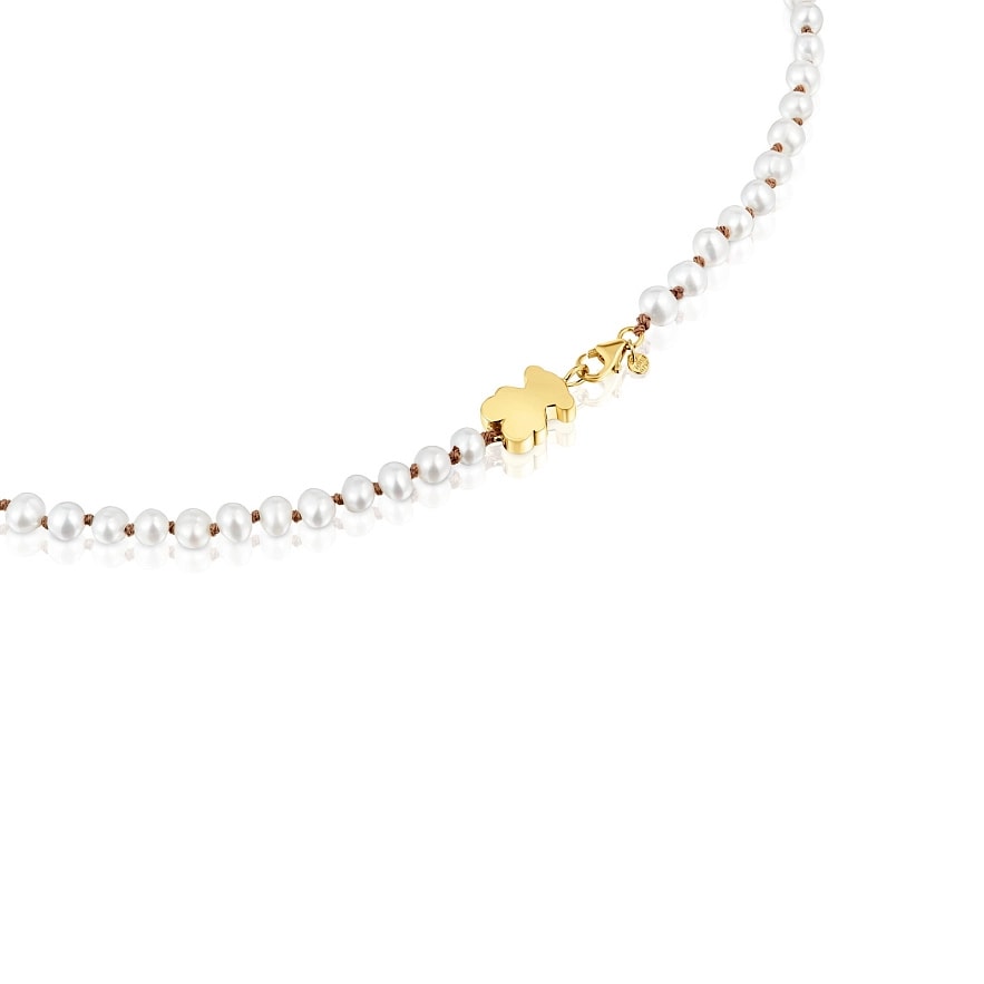 Колье TOUS Sweet Dolls с медвежонком из желтого золота 18 карат и культивированными пресноводными жемчужинами. Размер мотива: 10 мм. Длина колье: 45 см. Застежка лобстер.