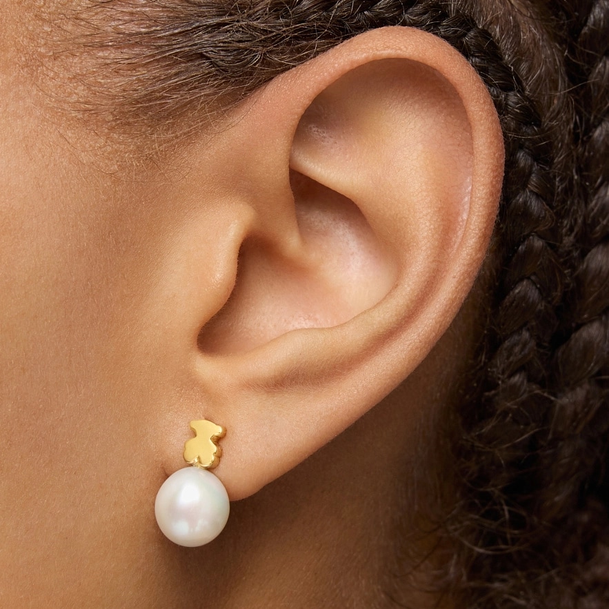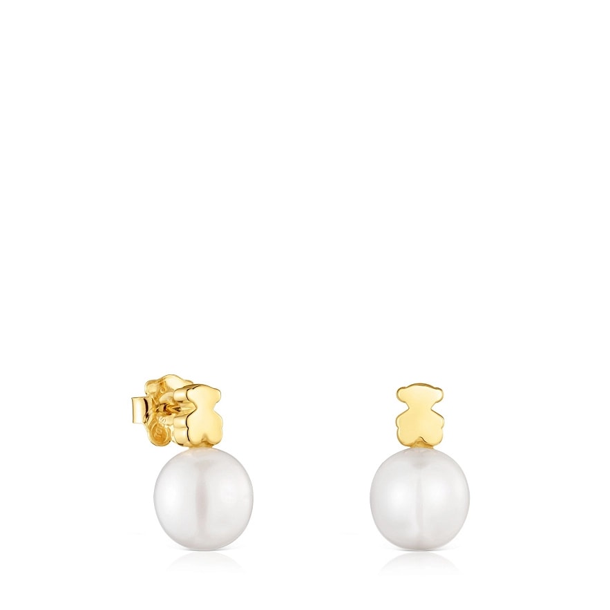 Серьги TOUS Sweet Dolls из 18-каратного желтого золота с мотивом мишки и культивированной пресноводной жемчужиной. Размер мишки: 6 мм. Размер культивированной жемчужины: 9 мм. Застежка-пусет.