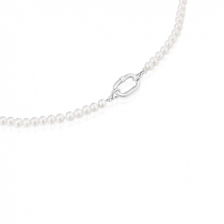Колье TOUS Hold Oval из серебра 925 пробы с кольцом и культивируемым пресноводным жемчугом. Размер кольца: 15 мм. Размер культивированного жемчуга: 4 мм - 4,5 мм. Длина колье: 47 см. Застежка на кольцо. Примечание: персонализируйте этот дизайн с помощью кулонов, брелков или колец.