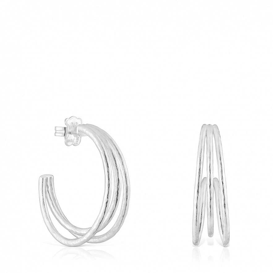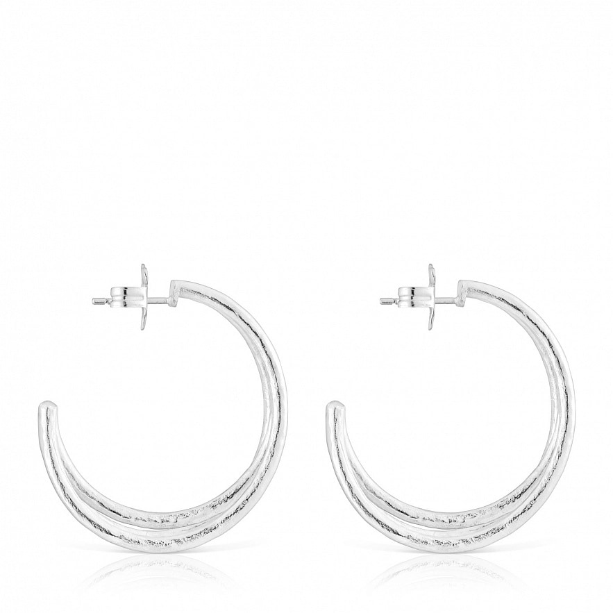 Серьги-кольца TOUS Duna из серебра 925 пробы. Размер сережек: 32 мм.