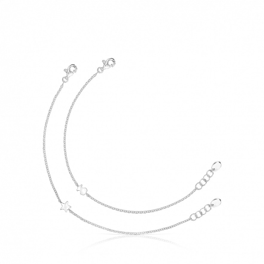Браслеты TOUS Mini Icons из серебра 925 пробы с мишкой и звездой 5-6 мм. Длина браслета: 17,5 см. Техника изготовления: Литье.