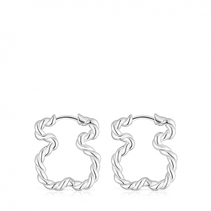 Серьги-кольца TOUS Twisted из серебра 925 пробы в форме мишки размером 22 мм.