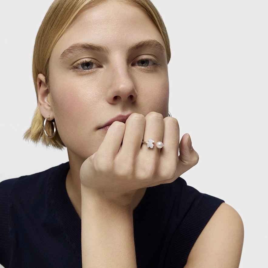 Кольцо TOUS Sweet Dolls из серебра 925 пробы с культивированной пресноводной жемчужиной и мотивом мишки. Размер мишки: 8 мм. Размер культивированной жемчужины: 6 мм.