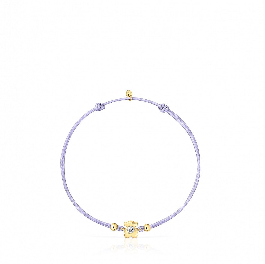 Браслет TOUS Lili Motives LGD с мотивом мишки из 14-каратного желтого золота с бриллиантом 0.10 карата, выращенным в лаборатории, и сиреневым нейлоном. Качество бриллианта: G/VS. Размер мотива: 6 мм. Длина браслета: 17 см. Качество бриллиантов: G/VS. Застежка-слайдер. Изделие создано с бриллиантами, выращенными в лаборатории. Tracemark гарантирует прослеживаемость всех материалов, которые идут на изготовление этого изделия, а также место его производства, и имеет документальное подтверждение этого.