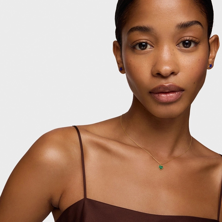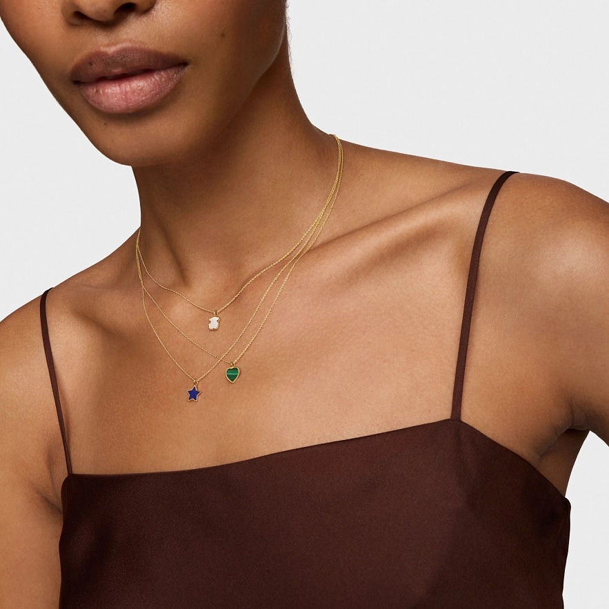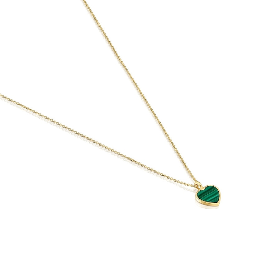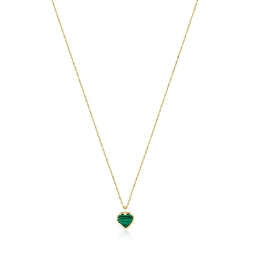 Колье TOUS XXS из желтого золота 14 карат с ограненным малахитом в форме сердца. Длина колье: 17 см. Застежка-лобстер.