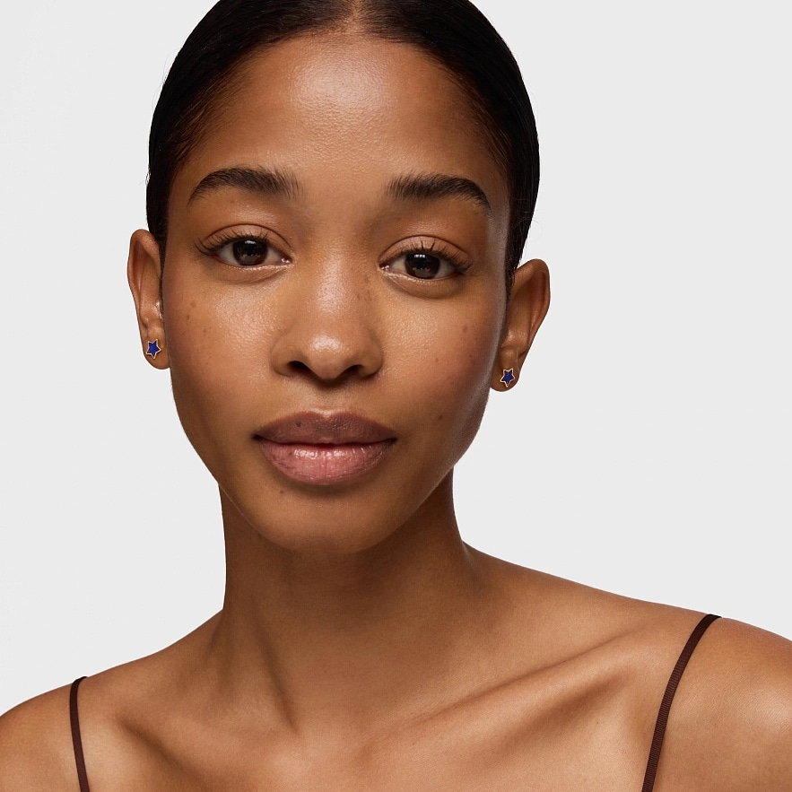 Серьги TOUS XXS из 14-каратного желтого золота с фацетированным лазуритом в форме звезды. Размер серег: 7 мм. Застежка-пусет.