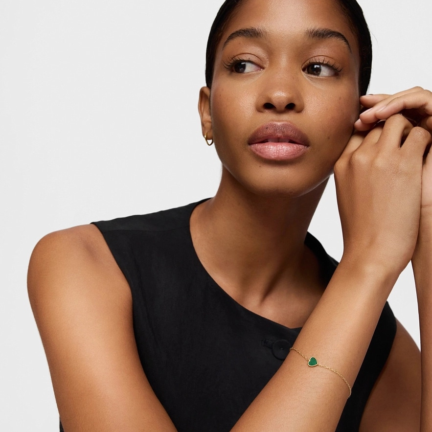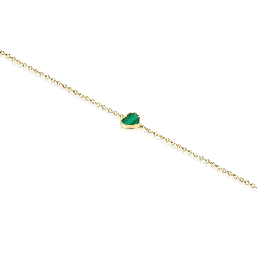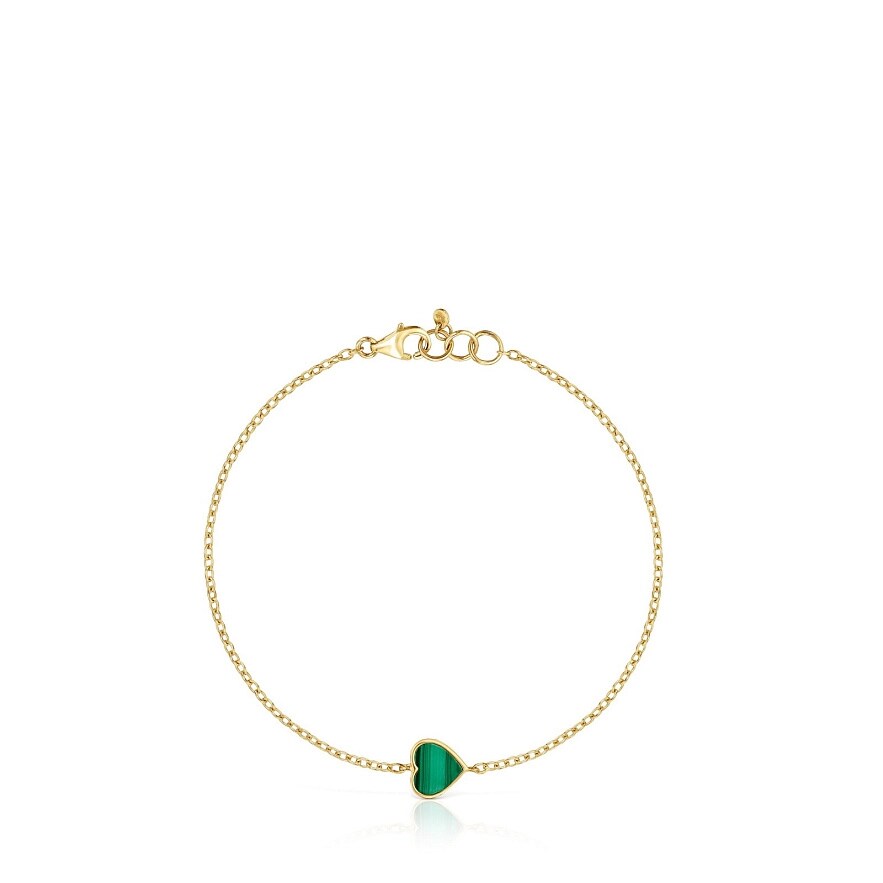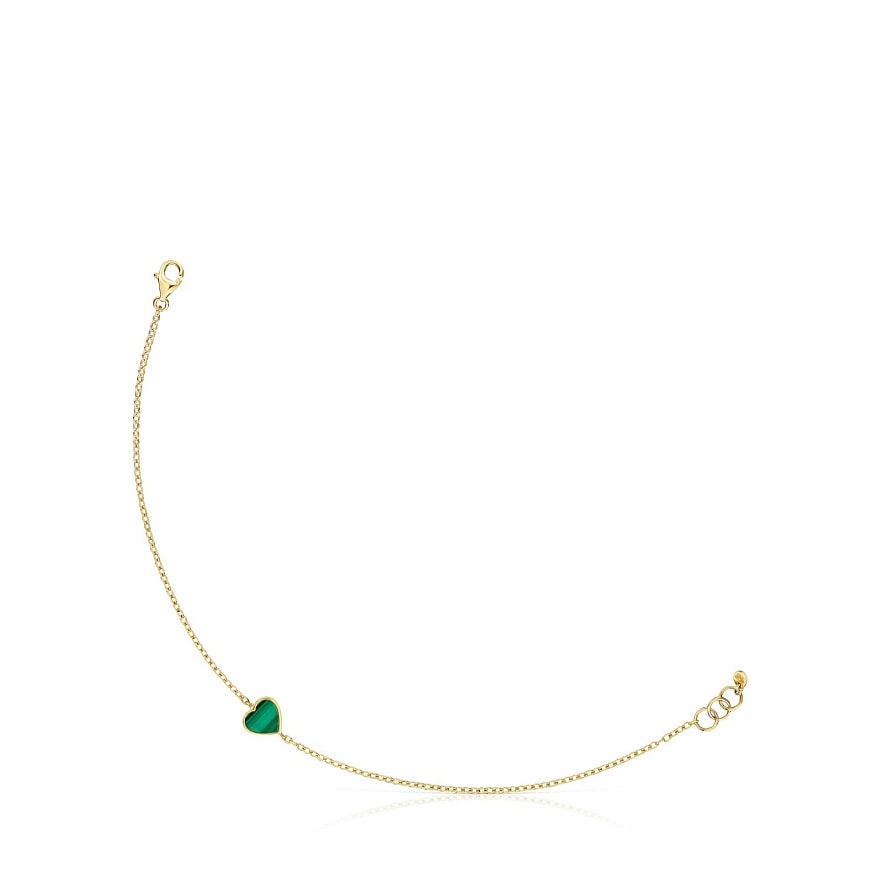 Браслет TOUS XXS из желтого золота 14 карат с ограненным малахитом в форме сердца. Длина браслета: 17 см. Застежка-лобстер.