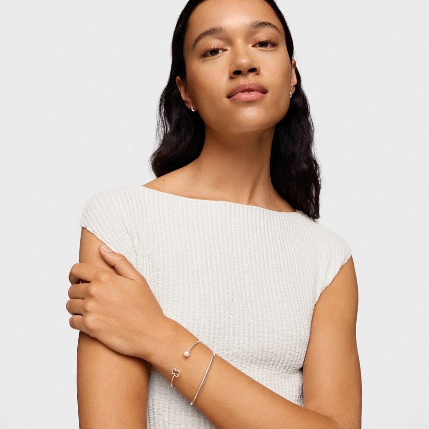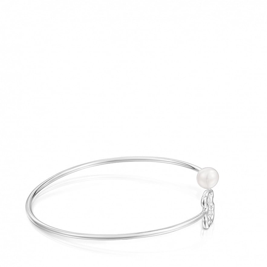 Браслет TOUS New Silueta из серебра 925 пробы с мотивом мишки и культивированной пресноводной жемчужиной. Размер мотива: 10 мм.