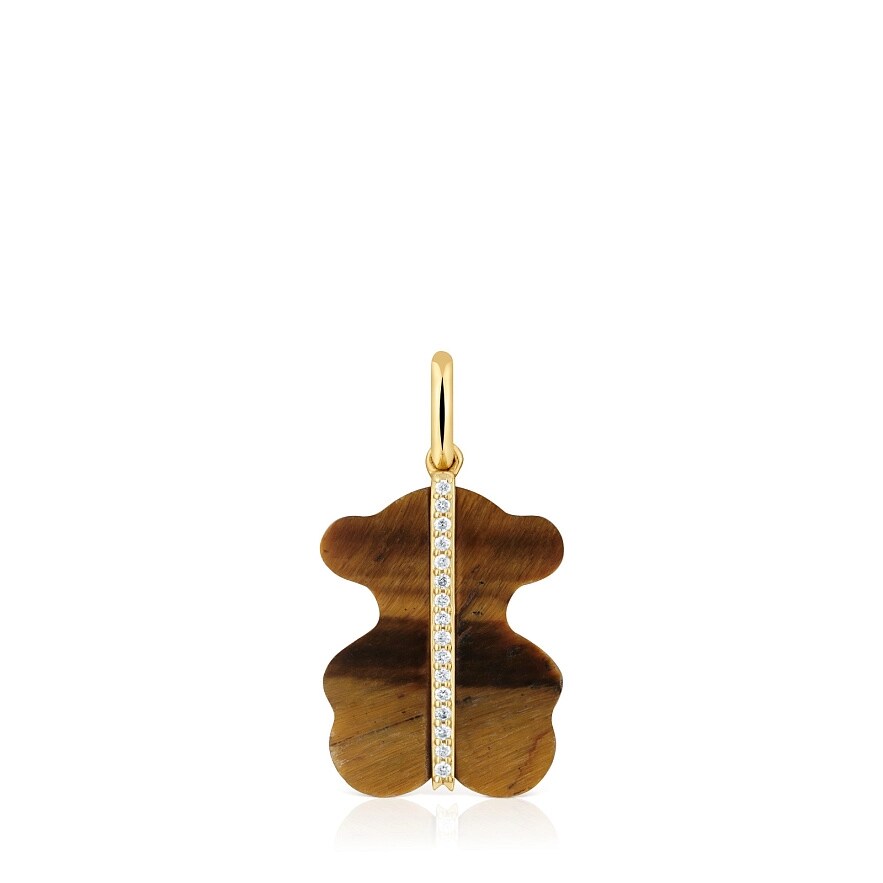 Кулон TOUS Sweet Dolls из 14-каратного желтого золота с бриллиантами 0,04 карата и тигровым глазом в форме мишки. Качество бриллиантов: H/SI. Размер кулона: 16 мм. Цепочка к этому изделию не прилагается.