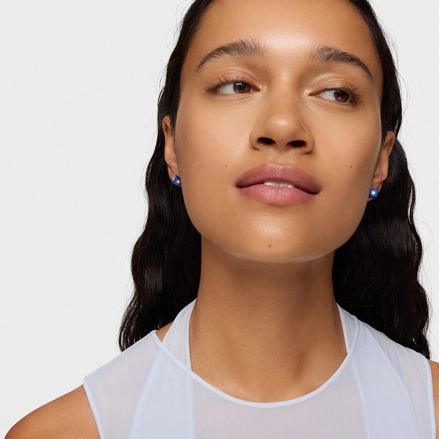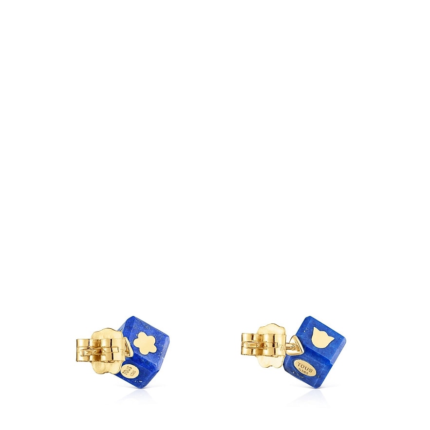 Серьги TOUS Cube с мотивами из желтого золота 14 карат и кубовидного лазурита. Размер серег: 6 мм.