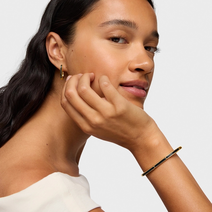 Браслет TOUS Line из серебра 925 пробы с покрытием Vermeil и ониксом. Толщина браслета: 4 мм. Диаметр браслета: 25 мм.