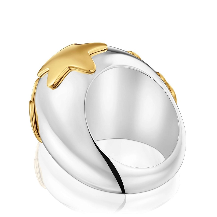 Кольцо TOUS Warm из серебра 925 пробы с мотивами, с покрытием Vermeil . Ширина кольца: 20 мм.