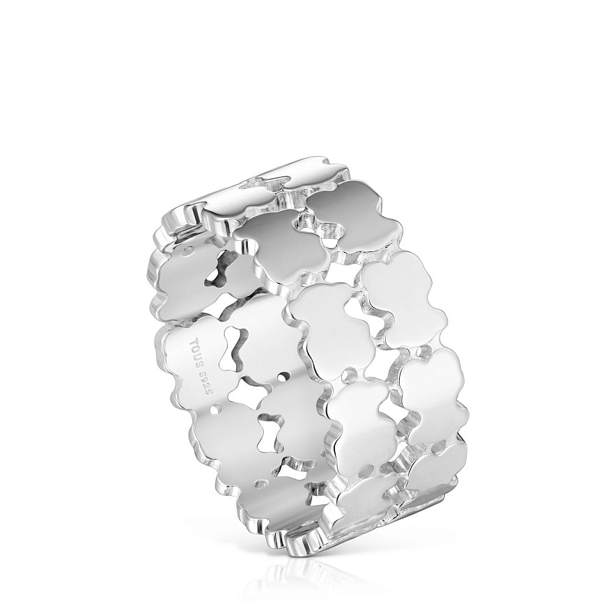 Кольцо TOUS Sweet 40s из серебра 925 пробы с мотивами медвежат. Ширина кольца: 8 мм.
