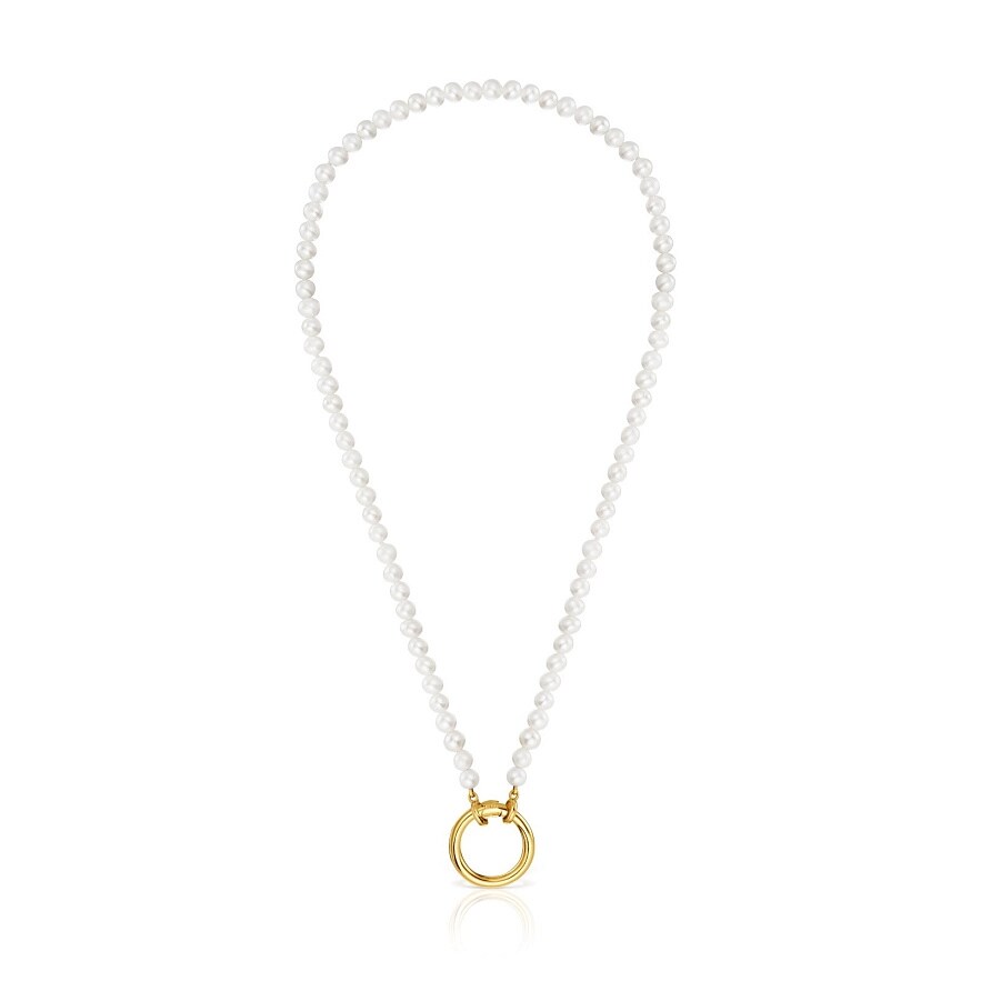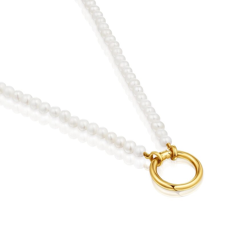 Колье TOUS Hold из серебра 925 пробы с покрытием Vermeil и культивированными пресноводными жемчужинами. Длина колье: 43 см. Размер кольца: 20 мм. Застежка кольца TOUS Hold.
