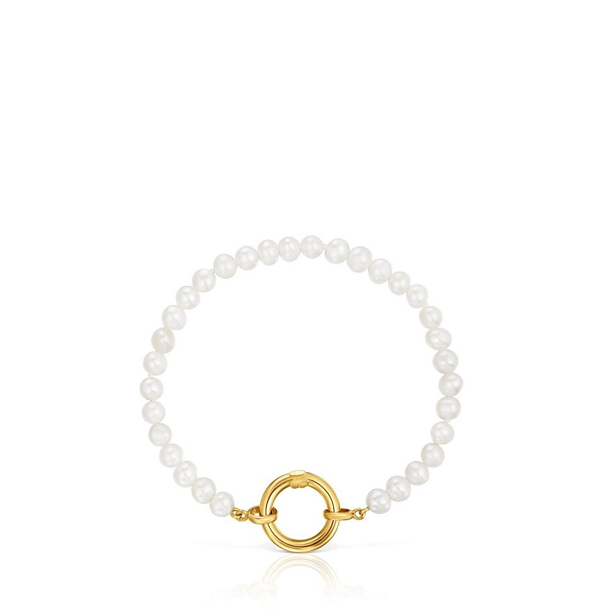 Браслет TOUS Hold из серебра 925 пробы с покрытием Vermeil и культивированными пресноводными жемчужинами. Длина браслета: 18 см. Размер кольца: 16 мм. Застежка-кольцо TOUS Hold.