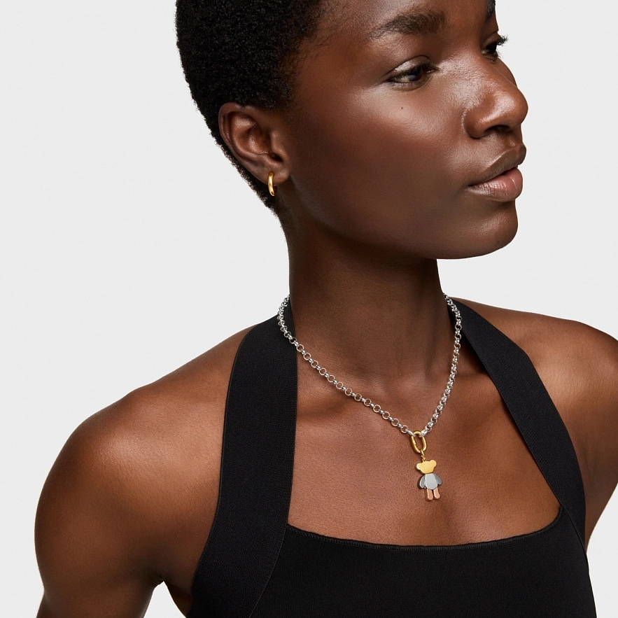 Кулон TOUS Teddy Bear из темного серебра 925 пробы, с покрытием 18-каратным золотом, золотого и розового цвета. Размер мишки: 25 мм. Это изделие не включает цепочку. Изделие изготовлено из серебра 925 пробы с покрытием из 18-23-каратного золота толщиной 3 микрона. Такое качество гарантирует большую долговечность украшения. Изделие изготовлено из серебра 925 пробы, покрытого слоем рутения, минерала, придающего прочность и блеск.