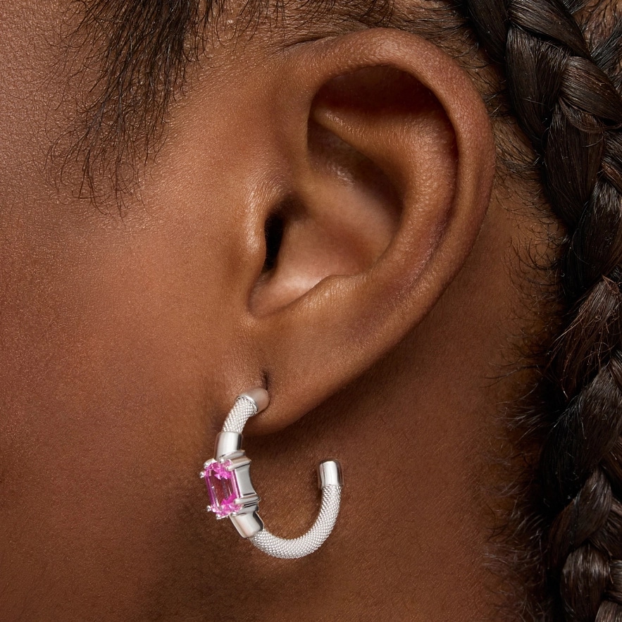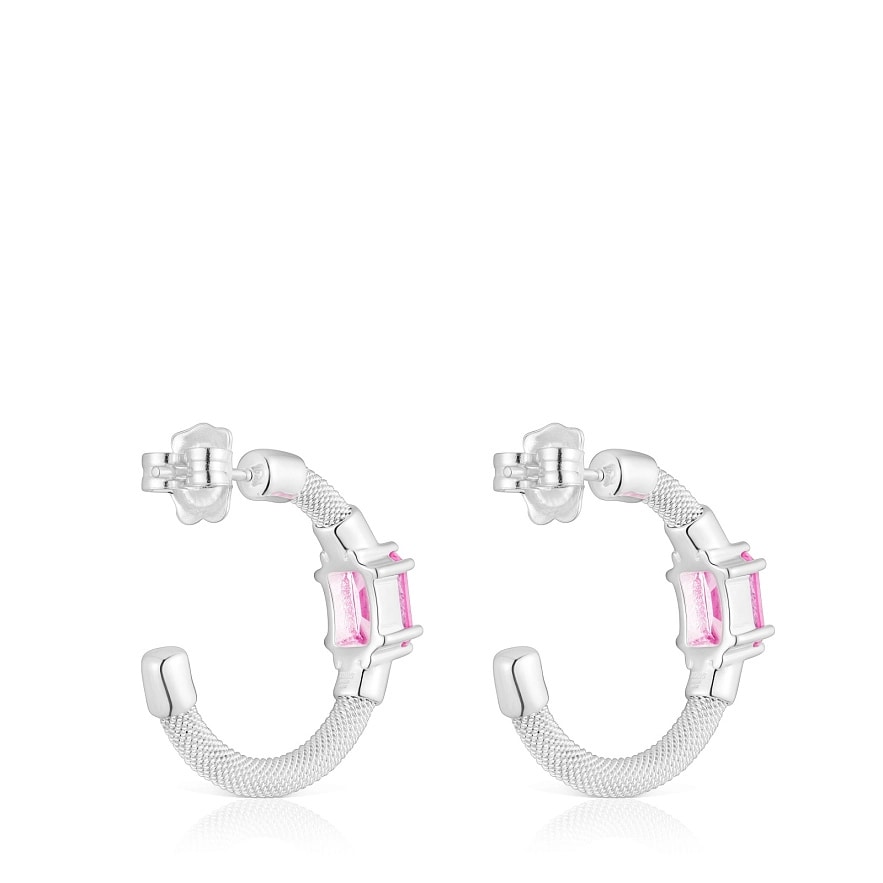 Серьги TOUS Mesh LGG из серебра 925 пробы и лабораторно выращенного розового сапфира. Размер серег: 23 мм. Изделие создано из лабораторно выращенных драгоценных камней.