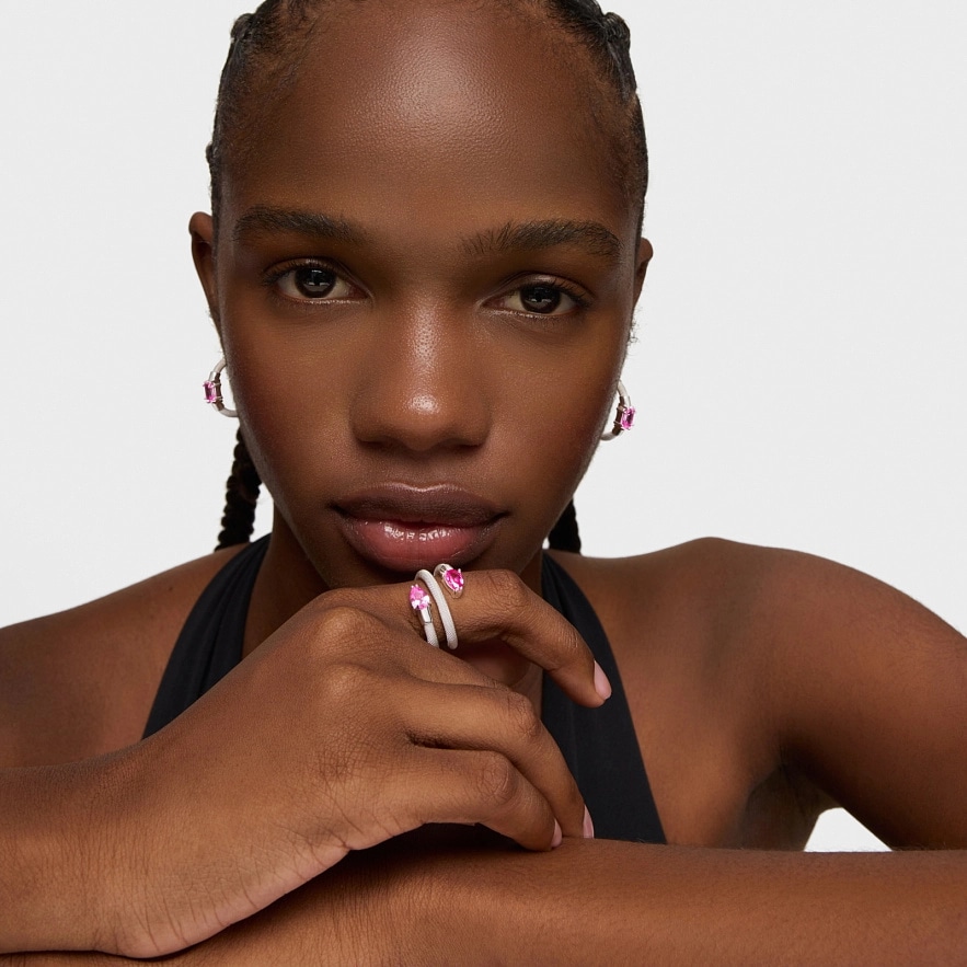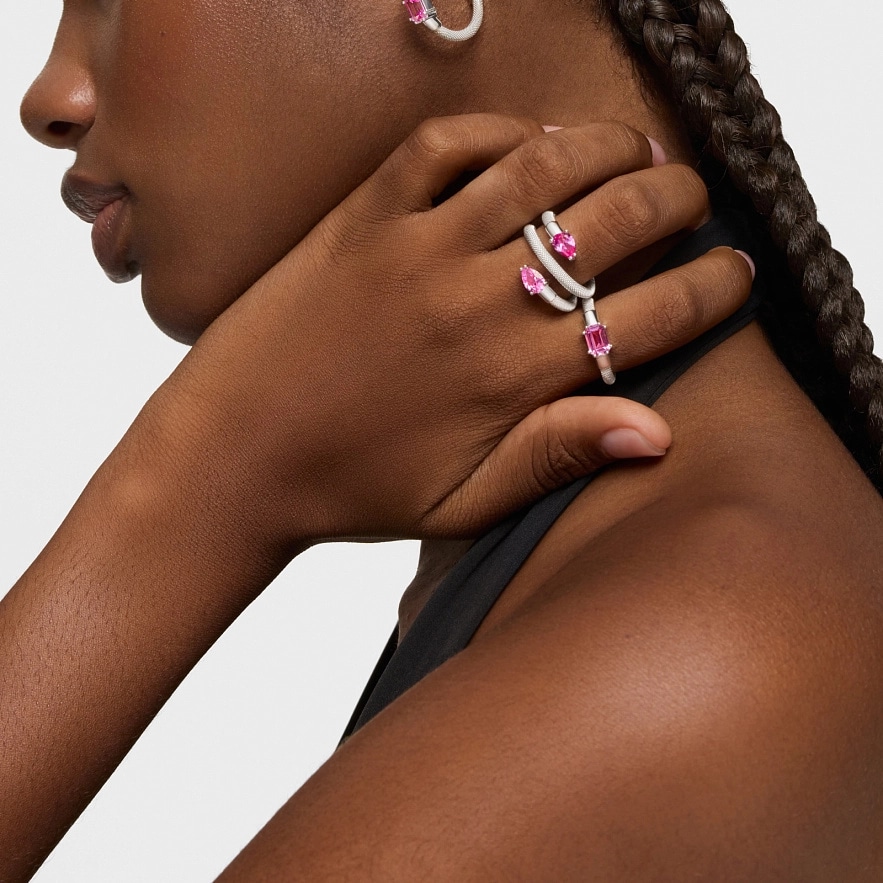 Кольцо TOUS Mesh LGG из серебра 925 пробы и лабораторно выращенными драгоценными камнями. Камни: рубин и розовый сапфир. Изделие создано из лабораторно выращенных камней.