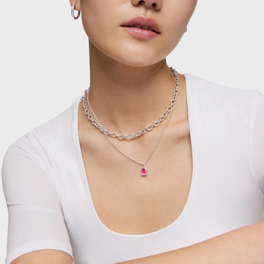 Колье TOUS Icon Color LGG из серебра 925 пробы с ограненным рубином в форме мишки, выращенным в лаборатории. Размер мишки: 10 мм. Длина колье: 45 см. Застежка-лобстер. Изделие создано с лабораторно выращенным драгоценным камнем.