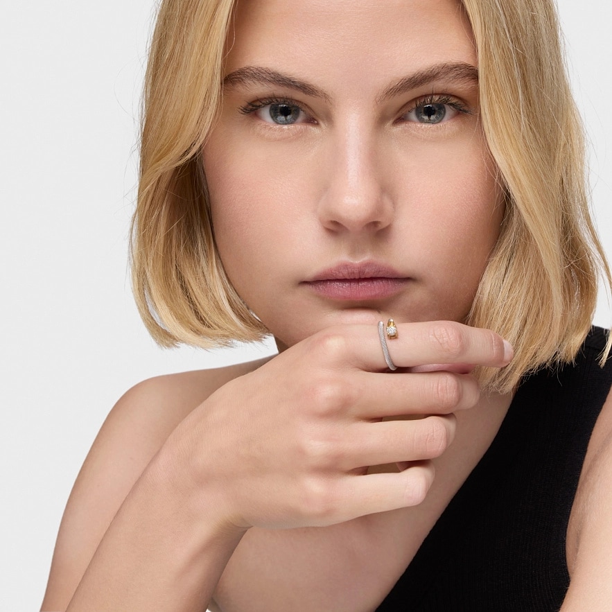 Кольцо TOUS Mesh LGD из 14-каратного желтого золота, нержавеющей стали и бриллиантов весом 0,21 карата в виде спирали. Качество бриллиантов: G/VS. Изделие создано с бриллиантами, выращенными в лаборатории.