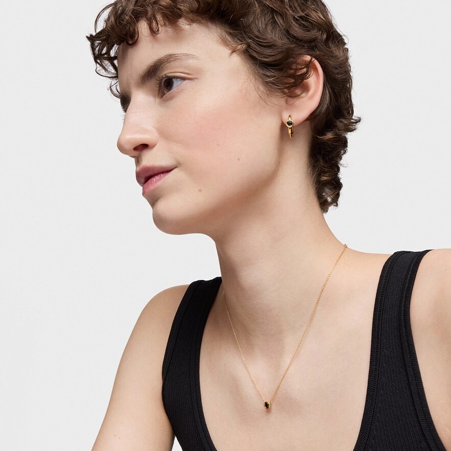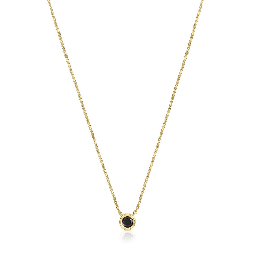 Колье TOUS Line из серебра 925 пробы с покрытием Vermeil и фацетированным круглым черным шпинелем. Длина колье: 45 см. Застежка-пружина.