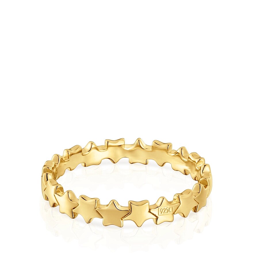 Кольцо TOUS Motifs из серебра 925 пробы с покрытием Vermeil и мотивами звезд.