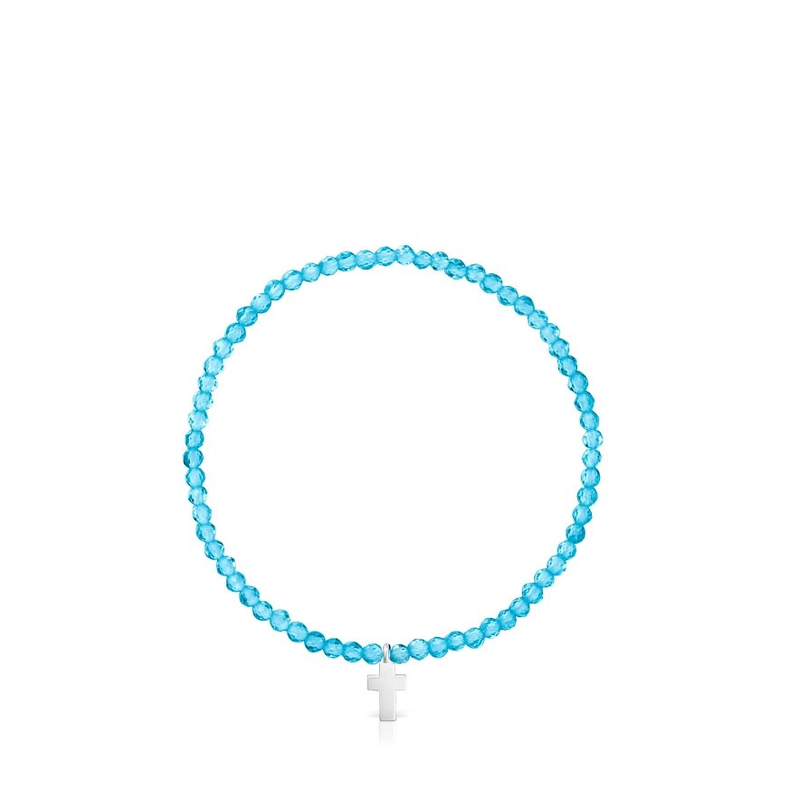 Браслет TOUS Motifs из серебра 925 пробы с огранёнными круглыми бусинами из неонового апатита и мотивом крестика. Длина браслета: 17 см.
