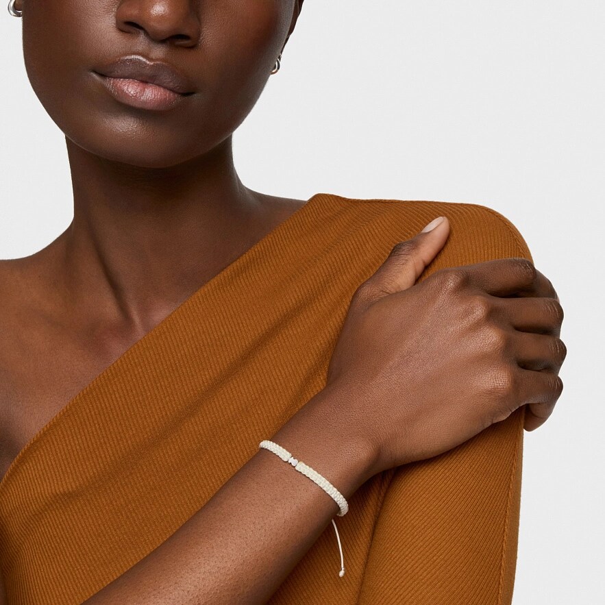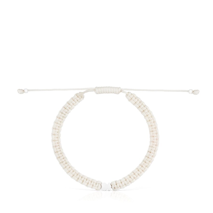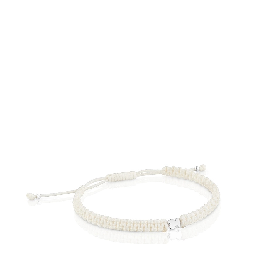 Браслет TOUS Motifs из серебра 925 пробы с мотивом мишки и белым нейлоном. Длина браслета: 17 см. Застежка-слайдер.