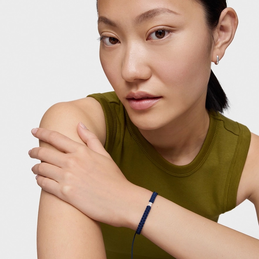 Браслет TOUS Motifs из серебра 925 пробы с мотивом мишки и зеленым нейлоном. Длина браслета: 17 см. Застежка-слайдер.