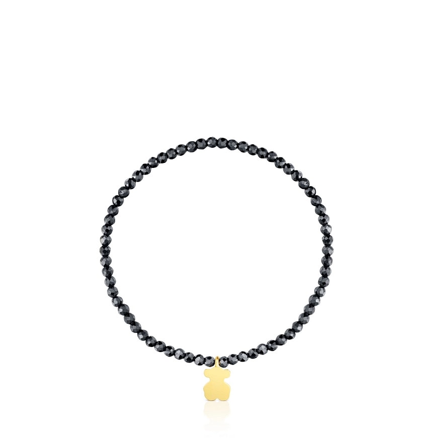 Браслет TOUS Motifs из серебра 925 пробы с покрытием Vermeil и огранёнными бусинами из серого гематита и мотивом мишки. Длина браслета: 17 см.