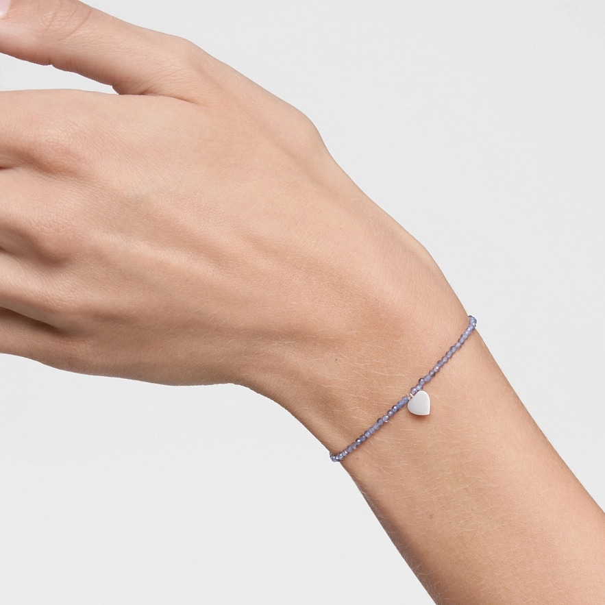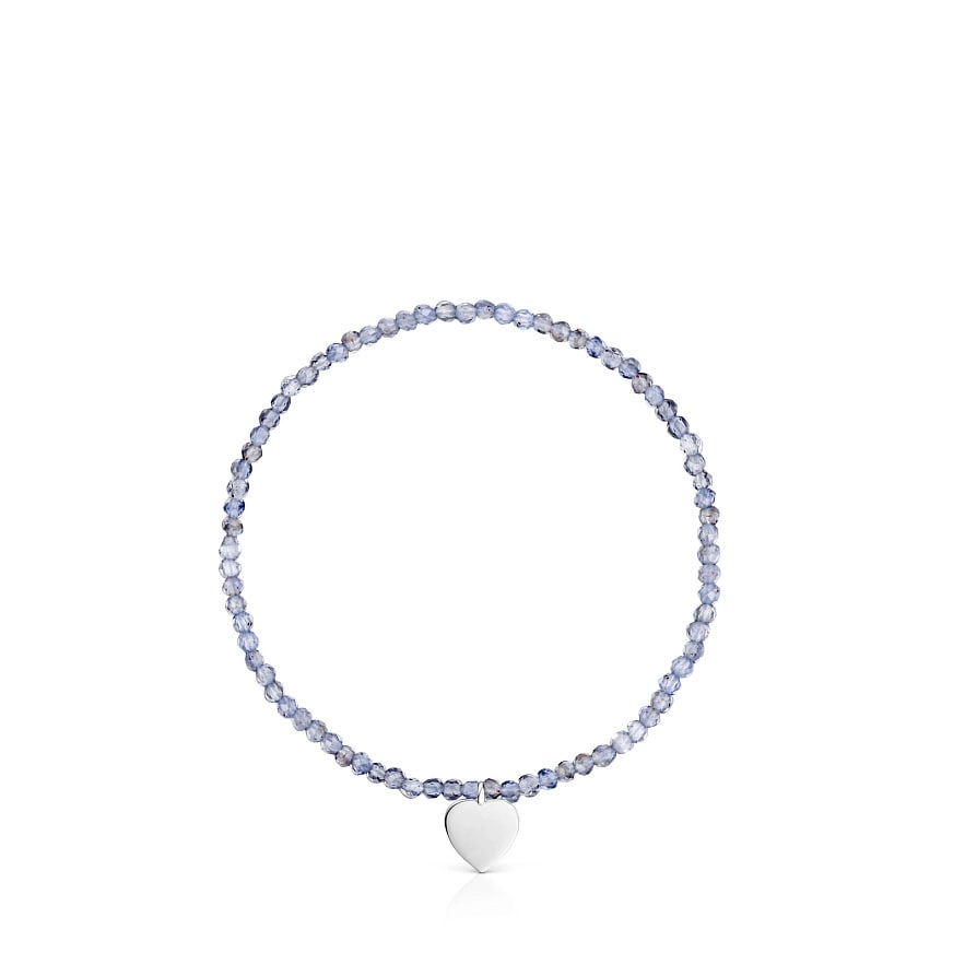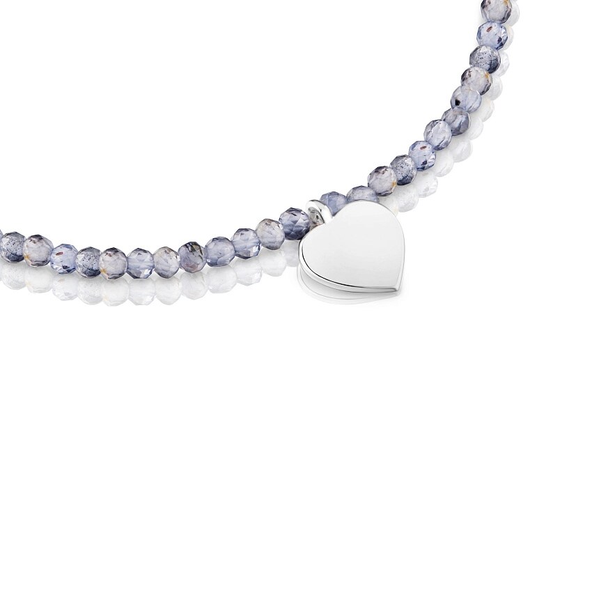 Браслет TOUS Motifs из серебра 925 пробы с огранёнными круглыми бусинами из иолита и мотивом сердца. Длина браслета: 17 см.