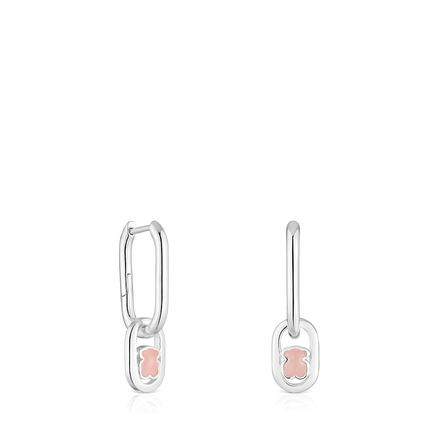 Серьги-кольца TOUS Camille из серебра 925 пробы и розового кварца в форме фасетированного мишки. Размер серег: 25 мм.