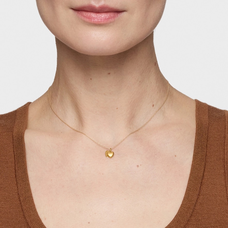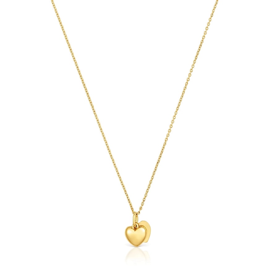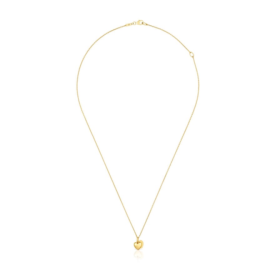 Колье TOUS Flechazo из 14-каратного желтого золота с мотивом двойного сердца. Размер мотива: 7 мм. Длина колье: 45 см. Застежка-бабочка.
