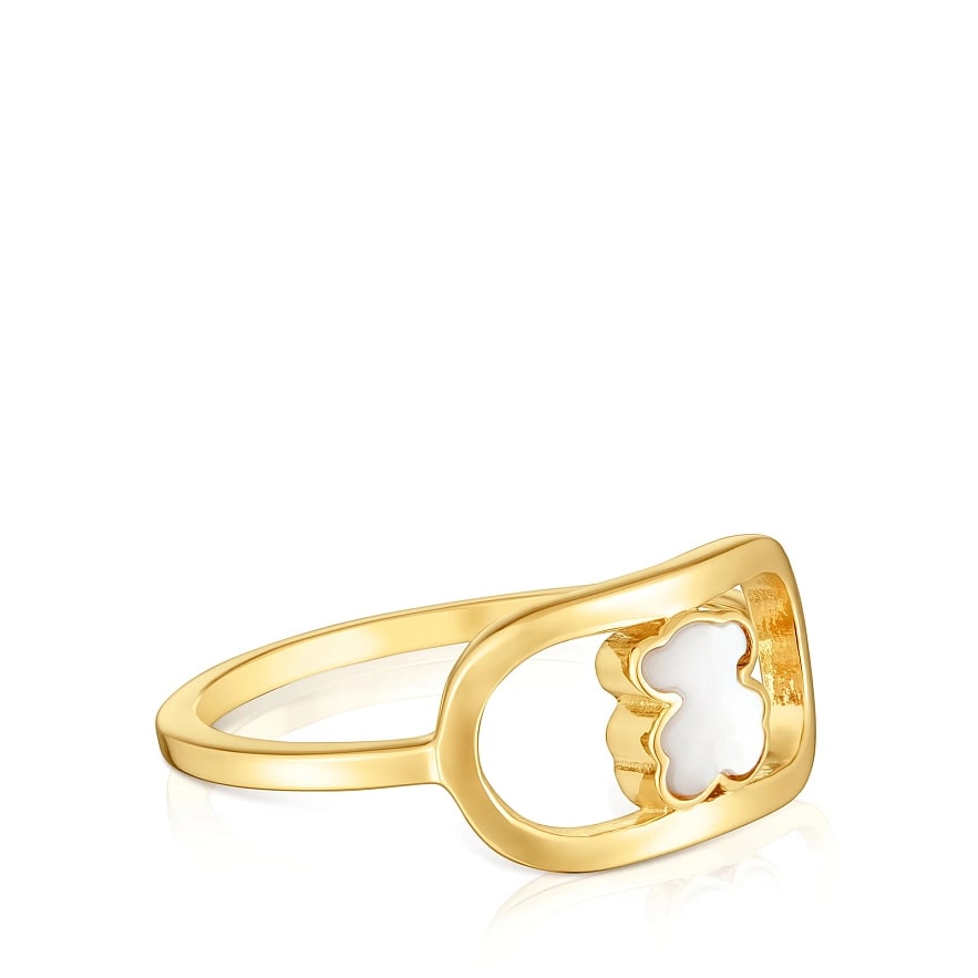 Кольцо TOUS Camille из серебра 925 пробы с 18-каратным золотым покрытием и фасетированным перламутром в форме мишки. Размер мотива: 15 мм. Изделие изготовлено из серебра 925 пробы с 18-23-каратным золотым покрытием толщиной 3 микрона. Такое качество гарантирует большую долговечность украшения.