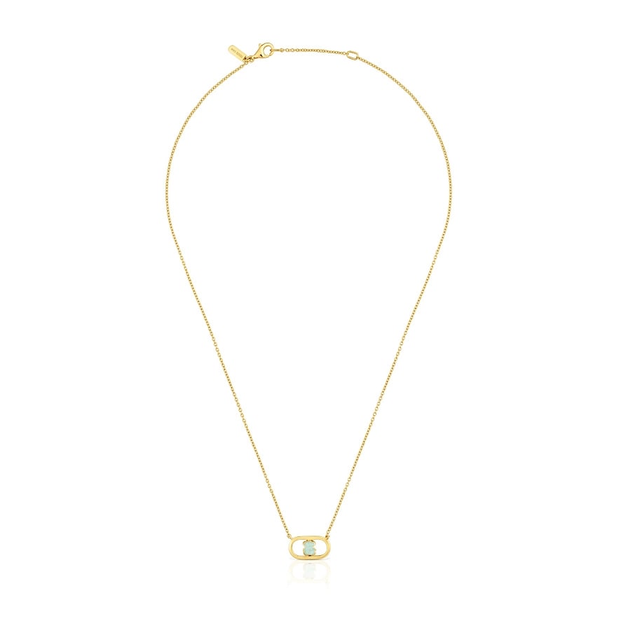 Намисто TOUS Camille зі срібла 925 проби з покриттям з 18-каратного жовтого золота та амазонітом у формі фасетованого ведмедя. Довжина намиста: 45 см. Застібка-карабін. Виріб виготовлений із срібла 925 проби з покриттям із золота 18-23 карат товщиною 3 мікрон. Така якість гарантує більшу довговічність прикраси.