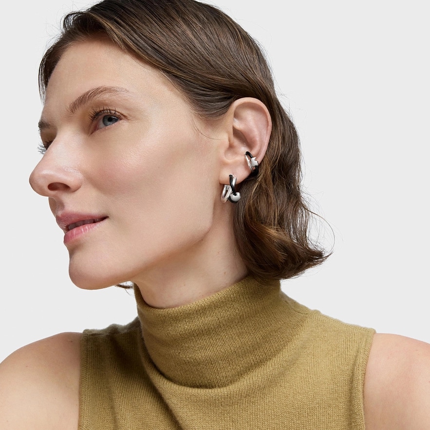 Серьги-кольца TOUS Bold Motif из серебра и черного каучука с мотивом сердца. Размер серег: 24 мм. Застежка-пусет.