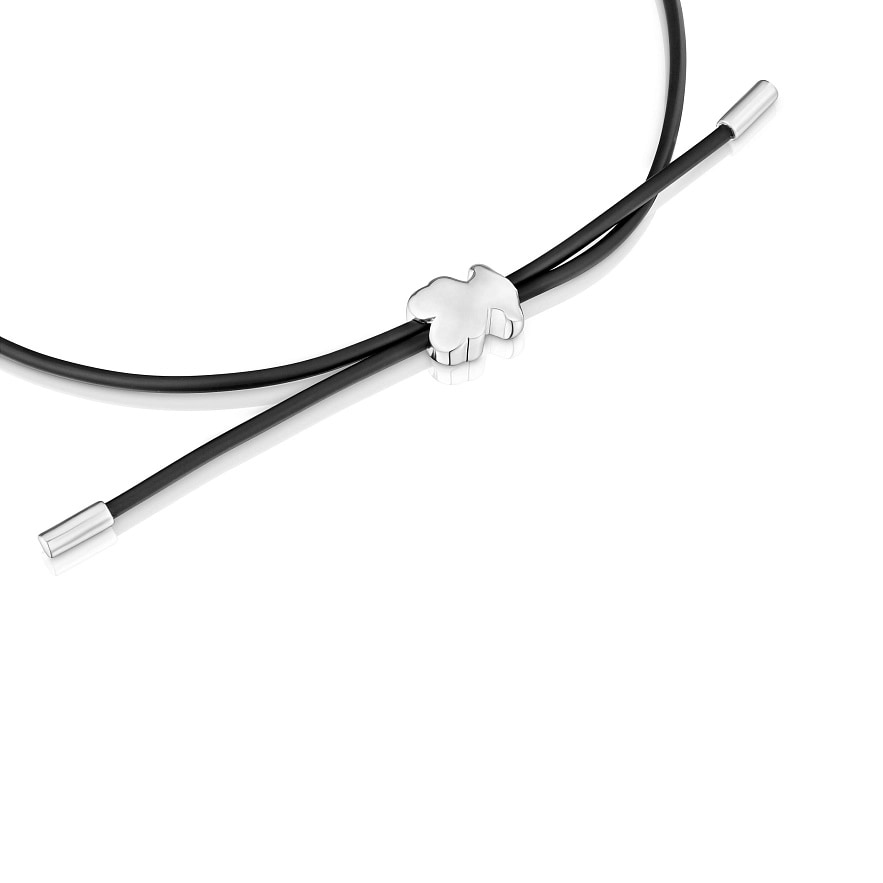 Браслет TOUS Bold Motif из серебра и чёрного каучука с мотивом медведя. Длина браслета: 17 см. Размер мотива: 7 мм. Застёжка-слайдер.