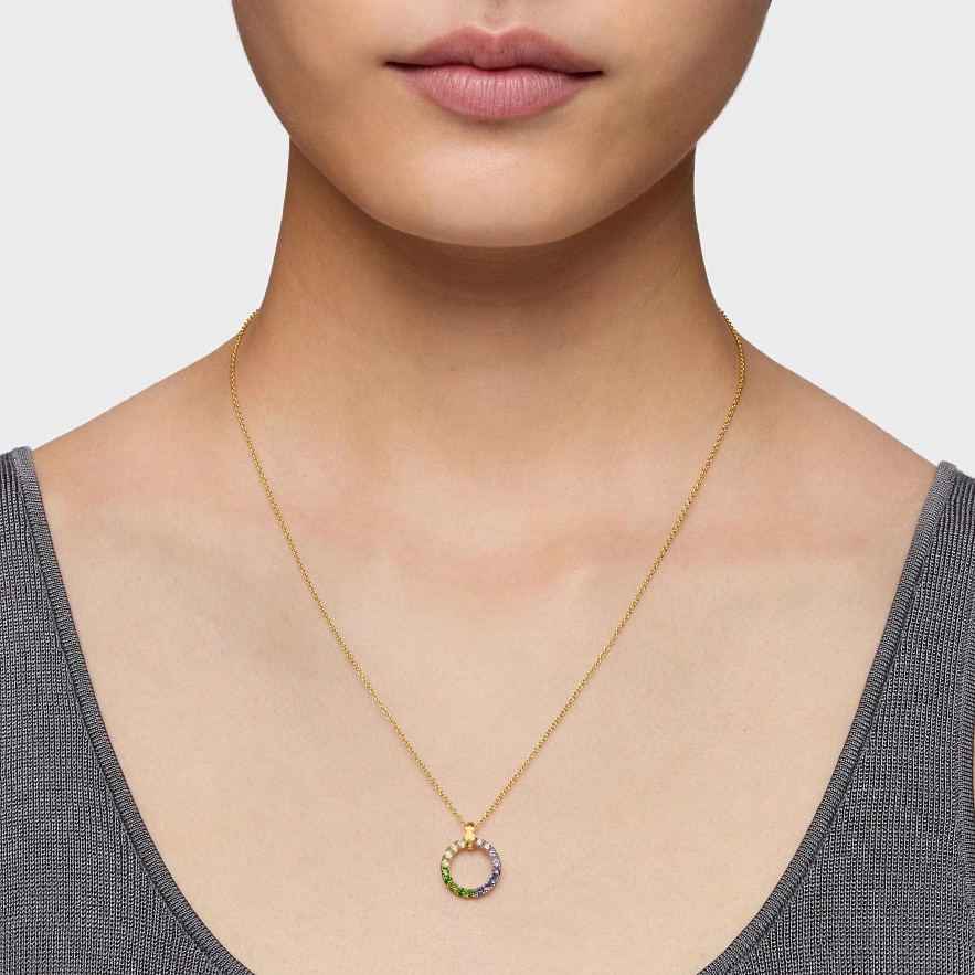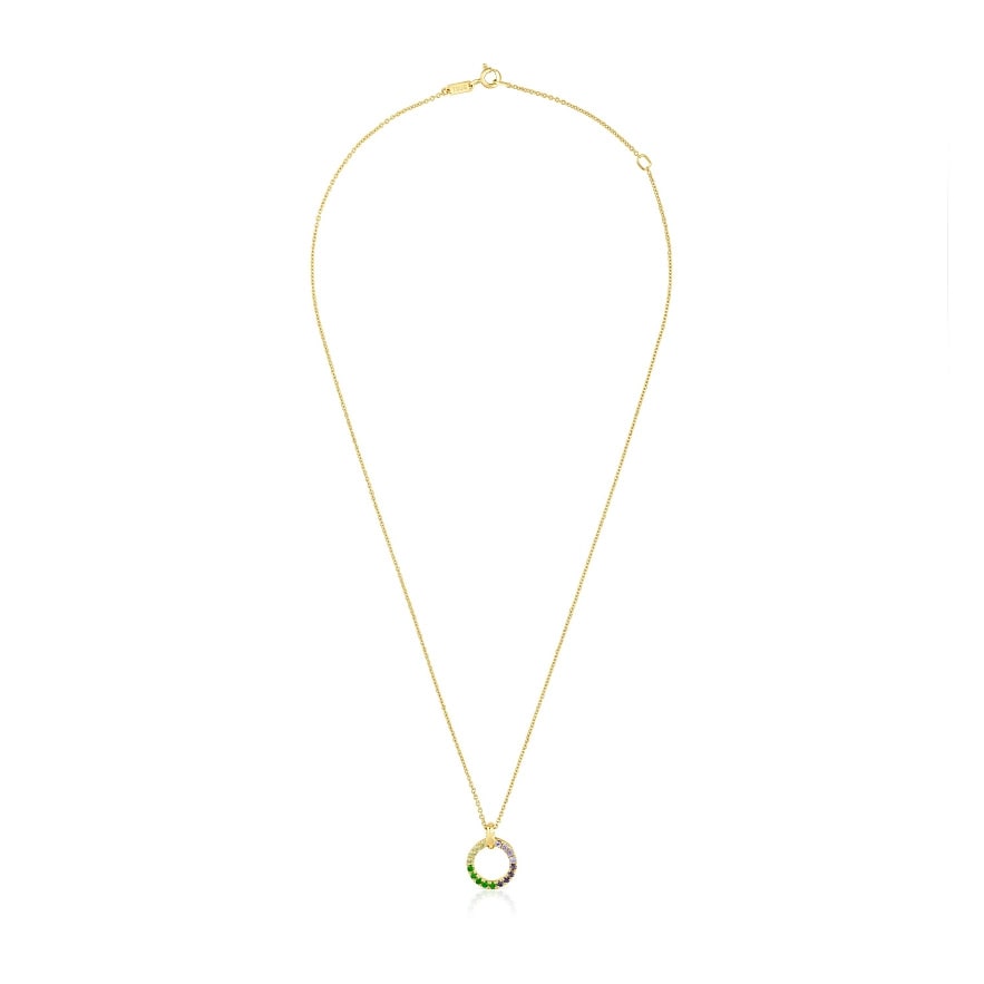 Колье TOUS Straight из серебра с 18-каратным золотым покрытием и ограненными круглыми драгоценными камнями. Драгоценные камни: хромовый диопсид, перидот, танзанит и иолит. Размер подвески: 14 мм. Длина ожерелья: 50 см. Застежка-пружина. Изделие изготовлено из серебра 925 пробы с 18-23-каратным золотым покрытием толщиной 3 микрона. Такое качество гарантирует большую долговечность ювелирных изделий.