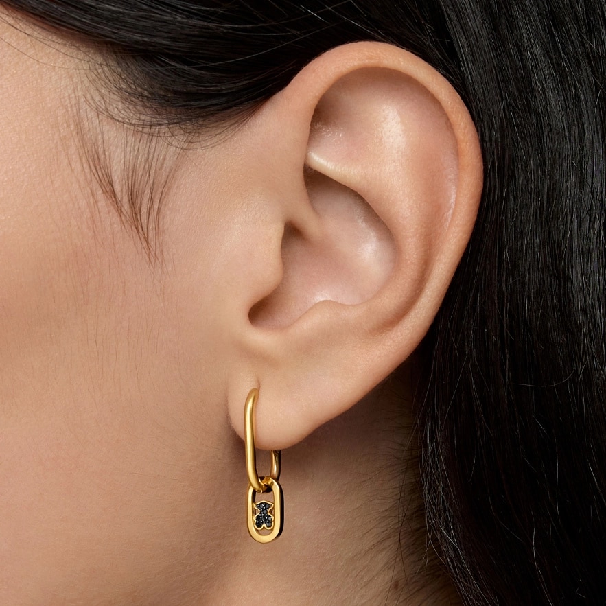 Серьги-кольца TOUS Camille из серебра 925 пробы с покрытием из 18-каратного желтого золота и шпинелью в форме фасетированного медведя. Размер сережек: 25 мм. Изделие изготовлено из серебра 925 пробы с покрытием из золота 18-23 карат и толщиной 3 микрон. Такое качество гарантирует большую долговечность украшения.