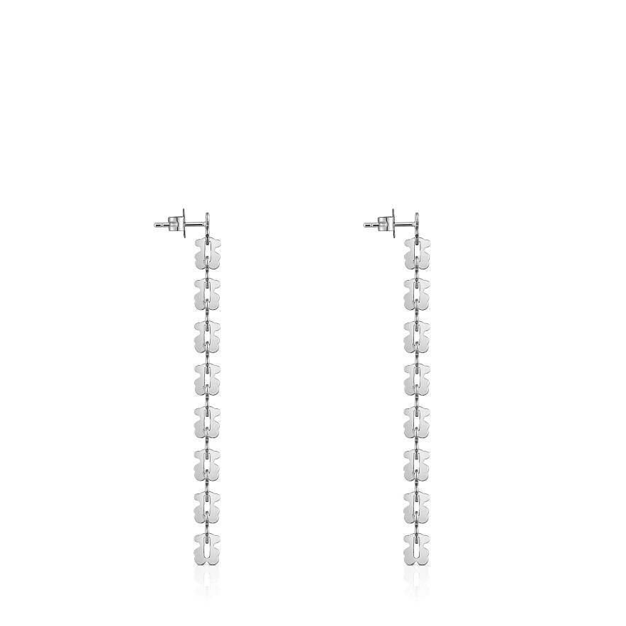 Длинные серьги TOUS Carrusel из нержавеющей стали с переплетенными мотивами медведей. Длина сережек: 65 мм. Толщина: 5,6 мм. Застежка-пусет.