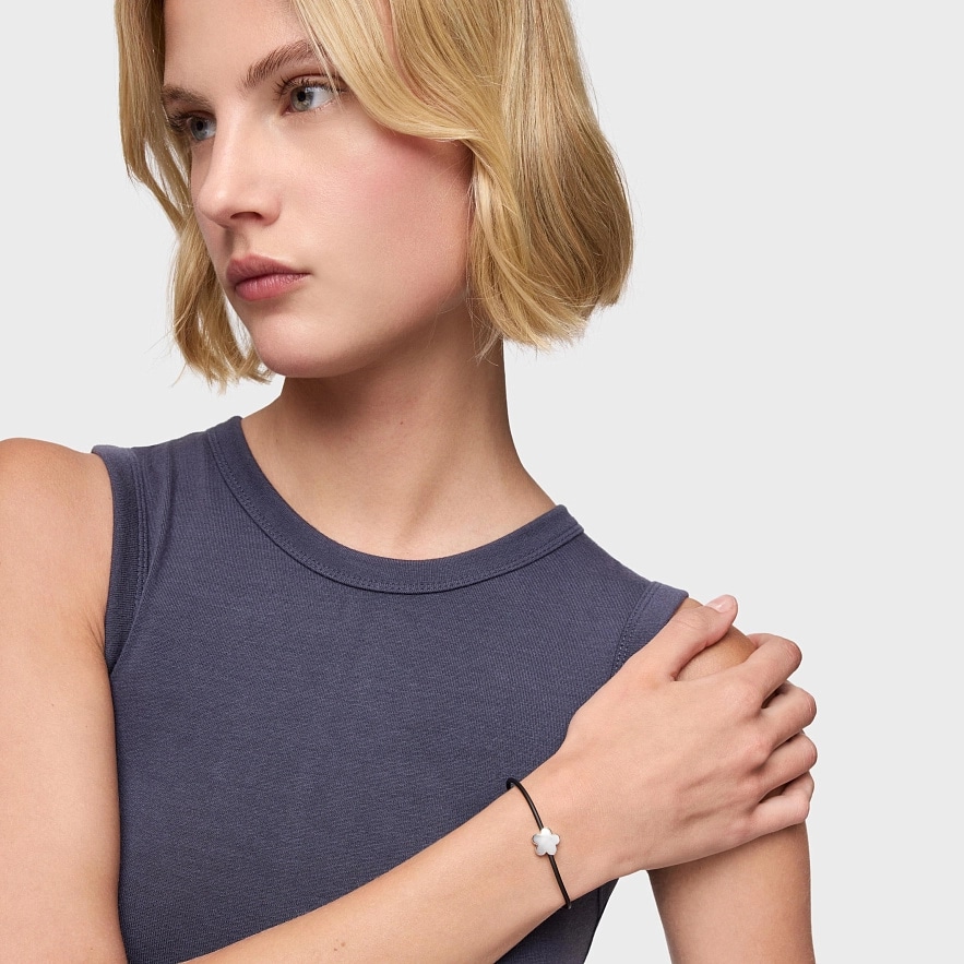 Браслет TOUS Bold Motif из серебра и чёрного каучука с цветочным мотивом. Длина браслета: 17,5 см. Размер подвески: 12 мм. Двойная застёжка.