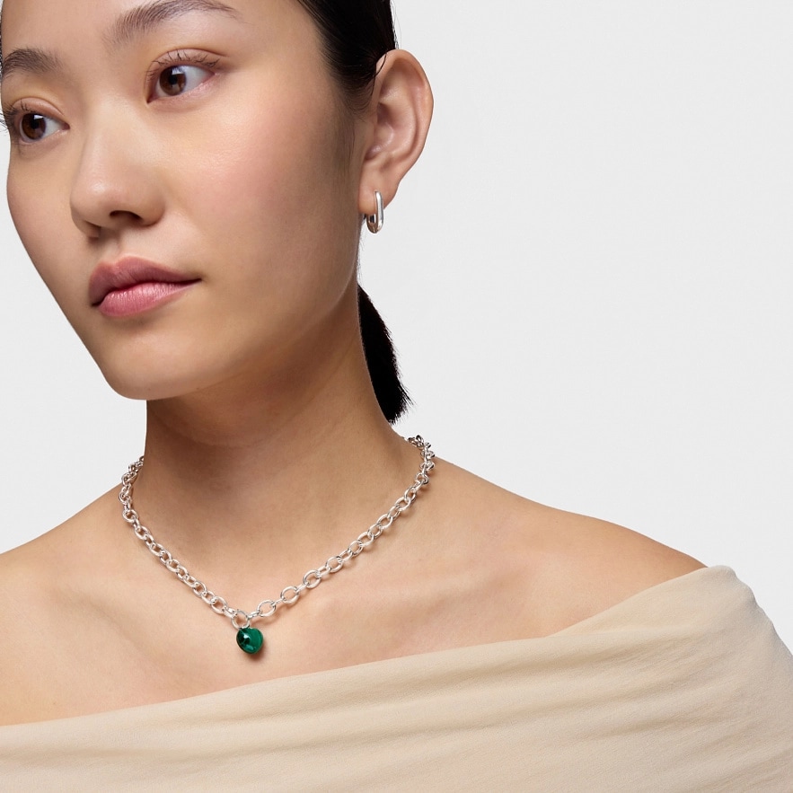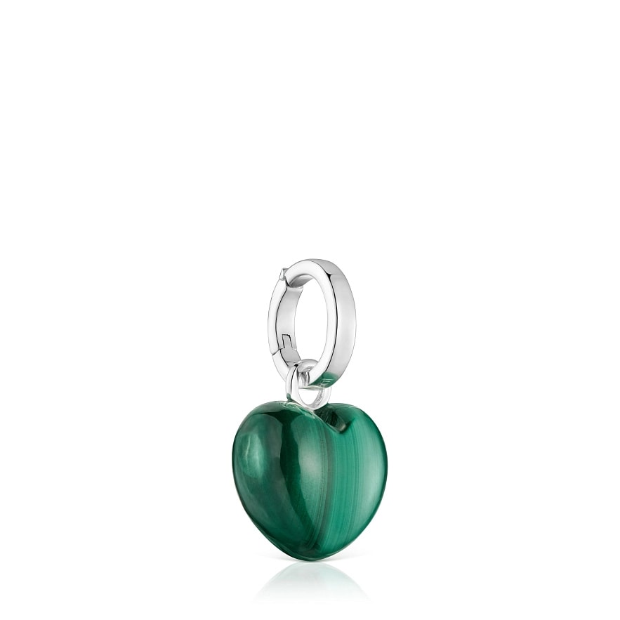 Кулон TOUS Flechazo из серебра 925 пробы с ограненным сердцем из малахита. Размер подвески: 12 мм. Цепочка к этому изделию не прилагается.