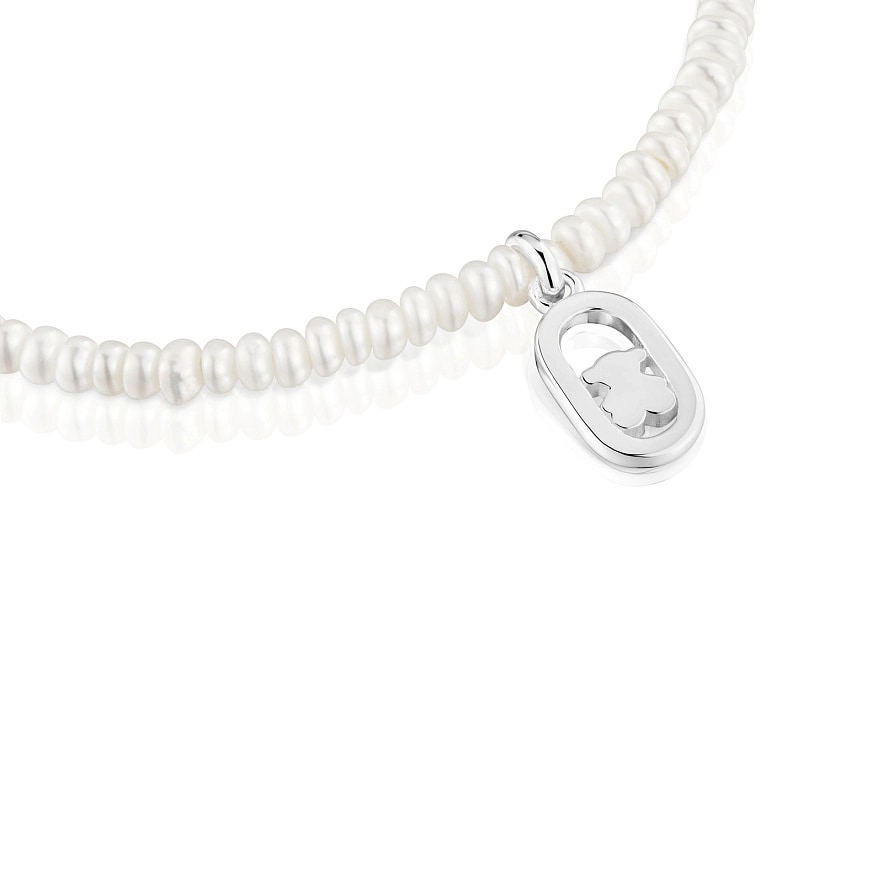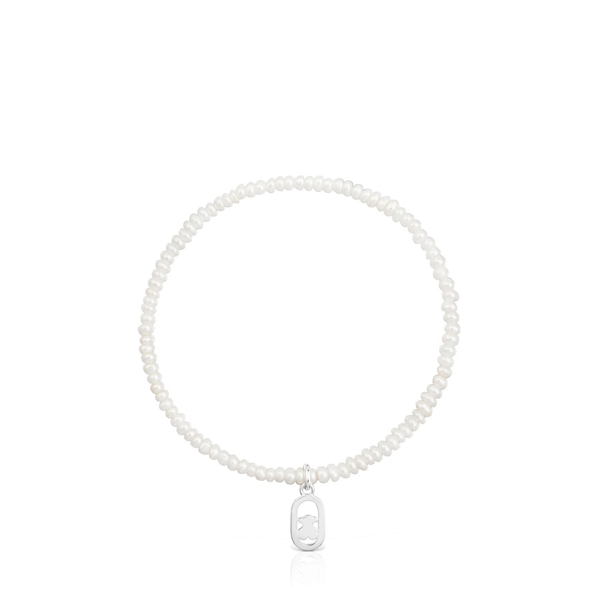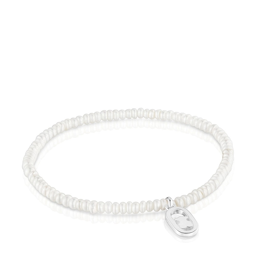 Эластичный браслет TOUS Camille из серебра 925 пробы с пресноводными культивированными жемчужинами и пластиной. Длина браслета: 17 см. Размер пластины: 11 мм.