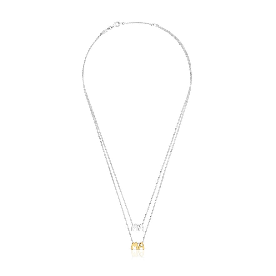Колье TOUS Mama из серебра 925-й пробы с 18-каратным позолочением, двойное, с мотивами в форме букв. Размер подвесок: 12,25 мм. Длина ожерелья: 45 см. Застежка-лобстер. Изделие изготовлено из серебра 925 пробы с 18-23-каратным золотым покрытием толщиной 3 микрона. Такое качество гарантирует большую долговечность ювелирных изделий.