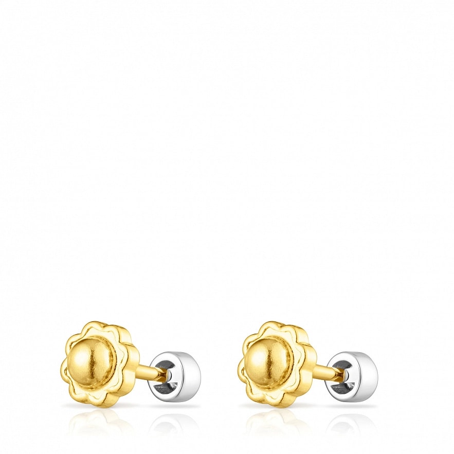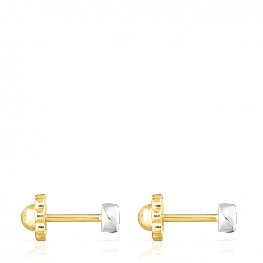 Серьги TOUS Diamonds из 18-каратного желтого и белого золота с бриллиантом. Общий вес: 0.07 карат. Размер: 0,5 см.